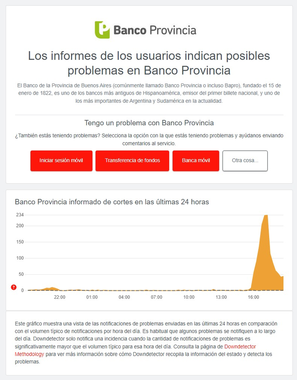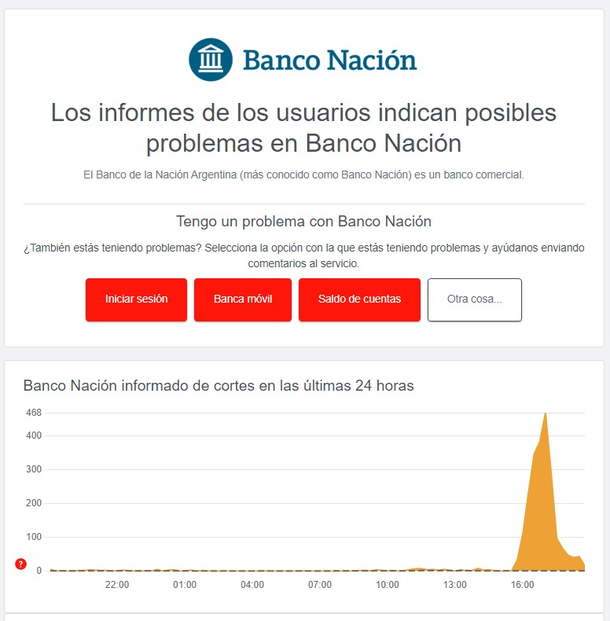 El sitio Downdetector hizo un relevamiento de los bancos con problemas.