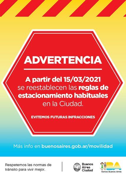 El Gobierno de la Ciudad dispuso el restablecimiento de las reglas habituales de estacionamiento. Las medidas volverán a regir este lunes 15 de marzo. El volumen vehicular alcanza picos del 90% respecto a los niveles registrados antes de la pandemia, cuando se dispuso que los días hábiles sean reglados como si fueran fines de semana o feriados.