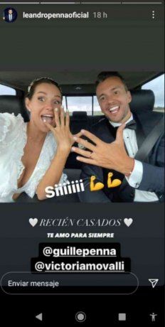 Leandro Penna, por su parte, había compartido fotos del casamiento y había asegurado que solo iba a asistir “todo el círculo íntimo” de la pareja recién casada: “Solamente iba a ir mi familia integrada por mis padres, hermanos, sobrinos y la familia por parte de la novia".