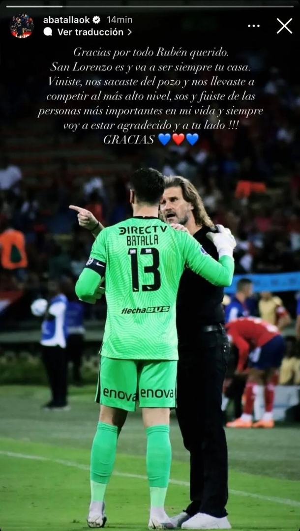 "Gracias por todo Rubén querido. San Lorenzo es y va a ser siempre tu casa. Viniste, nos sacaste del pozo y nos llevaste a competir al más alto nivel", comenzó. Y concluyó: "Sos y fuiste de las personas más importantes en mi vida y siempre voy a estar agradecido y a tu lado, GRACIAS".