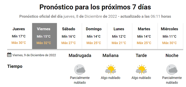 Para este viernes 9 de diciembre se espera en Mar del Plata una temperatura superior a los 30 grados, con una jornada mayormente soleada, más allá de alguna presencia nubosa.