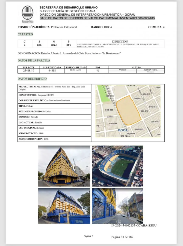 Este miércoles, aprobaron por mayoría el dictamen de un proyecto de ley presentado por Macri el 16 de septiembre. En él, se propone proteger 4.276 construcciones como patrimonio arquitectónico. De aprobarse, el estadio no podría ser sometido a modificaciones estructurales. Además, el proyecto incluye varias casas ubicadas sobre Del Valle Iberlucea, las cuales serían necesarias para la posible expansión del estadio.