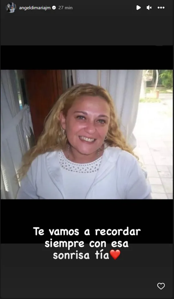 Di María compartió en sus redes sociales una imagen de su tía con unas palabras cargadas de emoción, al igual que lo hizo su hermana, Eve Di María, quien escribió: “Te voy a recordar siempre así, gracias por todo”.