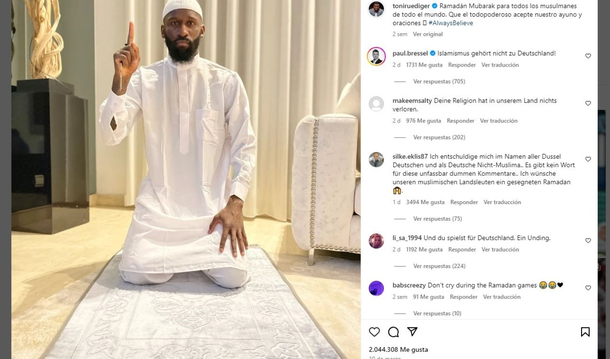 Esta queja de Reichelt llega a raíz de una publicación del defensa madridista el pasado 11 de marzo. "Que el Todopoderoso acepte nuestro ayuno y nuestras oraciones", indicaba Rüdiger en su post.