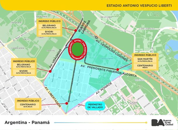 El Gobierno de la Ciudad diagramó un operativo de prevención y control en la zona de Núñez para el partido que disputará la Selección argentina contra Panamá este jueves a las 20:30 en el estadio Monumental de River.