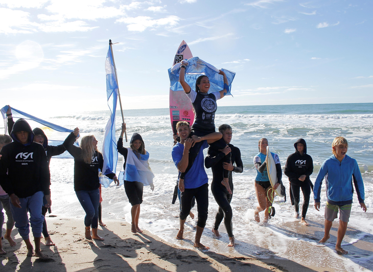 Así festejaron los jóvenes talentos del surf nacional tras ganar el Tag Team, la competencia de posta por equipos que se disputó en el Sudamericano Junior que se realizó por primera vez en el país. La ciudad, claro, fue Mar del Plata, la capital nacional de este deporte. Y el lugar, el balneario Honu Beach, al sur de la ciudad balnearia. Pero hubo más para disfrutar en esta competencia que, con el apoyo de Quiksilver, Roxy, Ala Moana Surfshop y Ford, la Asociación de Surf Argentino organizó junto a la Confederación Sudamericana para chicos y chicas entre 12 y 18 años de cinco países –el local, Perú, Chile , Colombia y Uruguay-. Argentina fue además subcampeón por equipos, detrás de una de las seis potencias a nivel mundial (Perú viene detrás de Estados Unidos, Australia, Brasil, Francia y Japón), y tuvo finalistas en todas las categorías (Menores de 14 años, Menores de 16 y Menores de 18, en ambas ramas), con presencia de al menos dos surfistas en cada semifinal. Cocó Cianciarulo, la hija del prestigioso músico Sr Flavio, extendió su dominio local al nivel internacional, ganando la categoría mayor. Joaquín Muñoz Larreta se impuso en M16 y su hermana, Victoria, resultó subcampeona en M16 y M14. Y Thiago Passeri, hijo de Martín -seis veces campeón nacional de Open- y nueva figura del Team Quiksilver, fue segundo en M14.