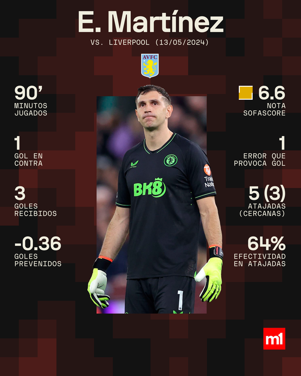 Con un blopper pero una tremenda atajada del Dibu Martínez, el Aston Villa igualó 3-3 ante Liverpool