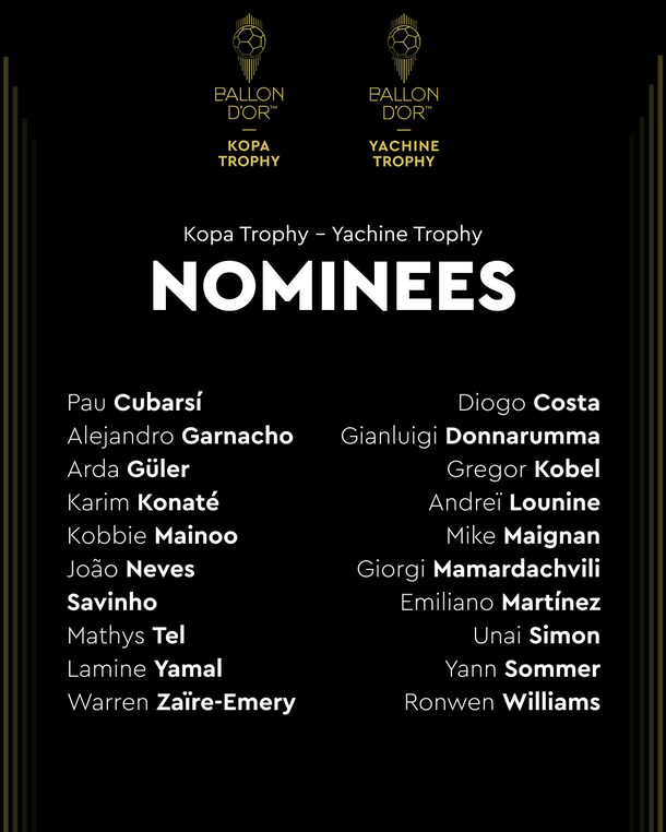 En esta edición, Lamine Yamal es el gran favorito luego de su aparición explosiva con el Barcelona sumado a ser figura de España en la Eurocopa 2024. Además, se agregan los siguientes nombres: Pau Cubarsí (Barcelona), Arda Güler (Real Madrid), Karim Konaté (RB Salzburgo), Kobbie Mainoo (Manchester United), João Neves (PSG), Savinho (Manchester City), Mathys Tel (Bayern Múnich) y Warren Zaïre-Emery (PSG).