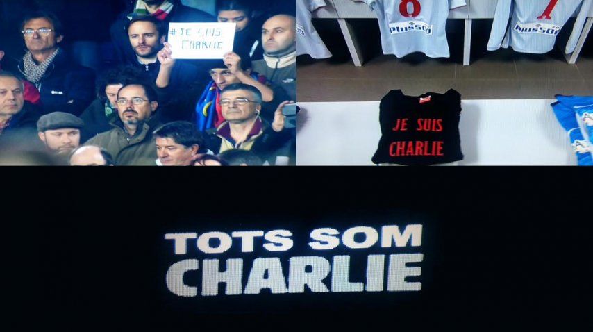 Tanto el periodista argentino, fallecido en Brasil durante el Mundial, como la revista que fue víctima de un atentado terrorista, fueron recordados en la previa del partido entre Barcelona y Atlético de Madrid.