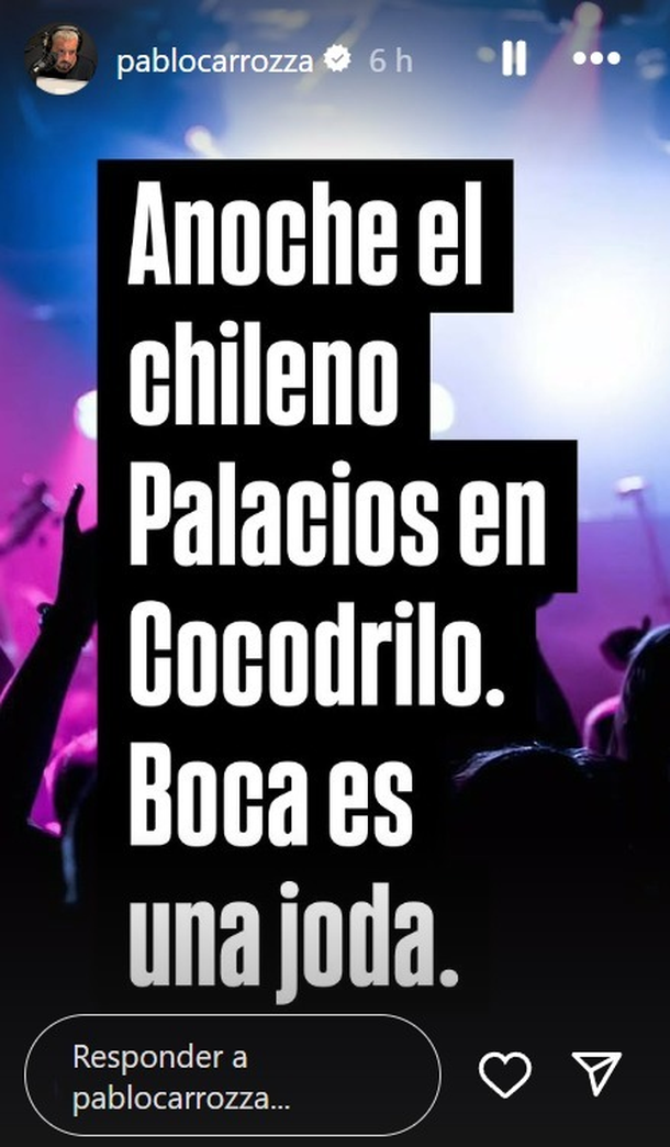 Ahora el periodista Pablo Carrozza, desde su cuenta de Instagram (@pablocarrozza), aseguró que el chileno fue visto en un conocido cabaret porteño, llamado Cocodrilo. Carrozza hace rato viene denunciando temas sobre el duro momento que atraviesa Boca, tanto en lo deportivo como institucional.