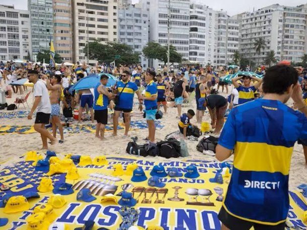 Los hinchas de Boca que viajaron a Brasil realizan este viernes un banderazo en Copacabana de cara a la final de la Copa Libertadores se jugará este sábado ante Fluminense en el estadio Maracaná.