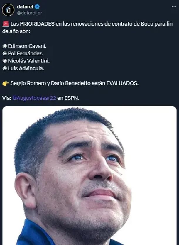 En este sentido, el Consejo de Fútbol de Boca, que encabeza Juan Román Riquelme, tiene como prioridad las renovaciones de otros cuatro jugadores: Edinson Cavani, Guillermo Pol Fernández, Nicolás Valentini y Luis Advíncula.