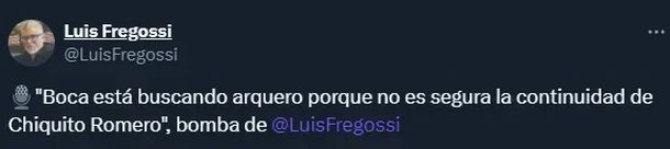 El periodista Luis Fregossi reveló en su programa que “Boca está buscando arquero porque no es segura la continuidad de Chiquito Romero“. Evidentemente, el futuro del actual guardameta titular no es seguro.