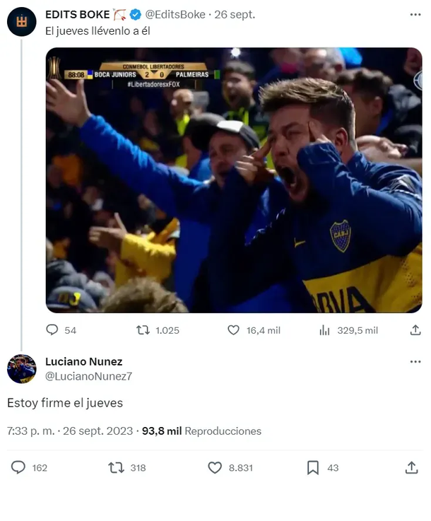 El joven apareció en las redes sociales para confirmar su presencia en este partido trascendental: "Estoy firme el jueves", contestó en X, antes Twitter. Se espera una Bombonera repleta para uno de los partidos más importantes del año.