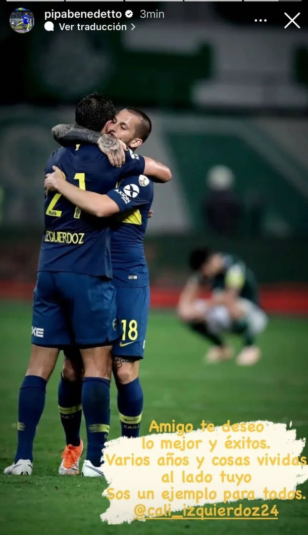 Sin embargo, el Cali dejó una buena impresión dentro del plantel y eso se vio reflejado en las redes sociales. A través de sus historias de Instagram, Darío Benedetto compartió una postal junto a Izquierdoz con un emotivo mensaje.