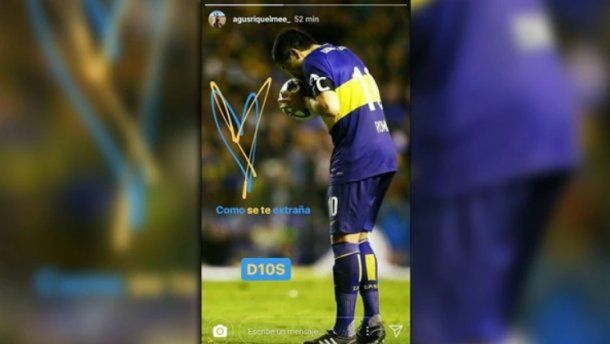 Agustín, hijo de Román, subió una foto de su papá con la 10 azul y oro y con la leyenda “cómo se te extraña, D10S”.