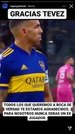 Pergolini además posteó que "todos los que queremos a Boca te estamos agradecidos" en una historia de Instagram en la que se observa a Carlos Tevez con la camiseta del Xeneize.