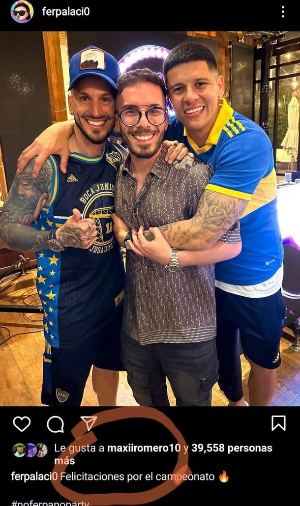 El delantero del equipo de Fernando Gago, que tuvo poca participación durante el año, le dio "like" a una foto que subió el reconocido DJ Fer Palacio junto a Darío Benedetto, Marcos Rojo y la copa del fútbol argentino.