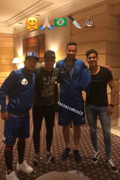 El defensor de 24 años, actual jugador de Tigre, compartió en Instagram su foto junto a Romero y Cabral y la acompañó con emojis. Claro que algunos de ellos llamaron la atención: un cuchillo y un excremento.