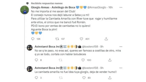 Que el mundo Xeneize atraviesa días caldeados, eso es seguro. Ahora dos de los personajes más famosos de Twitter se dijeron de todo.