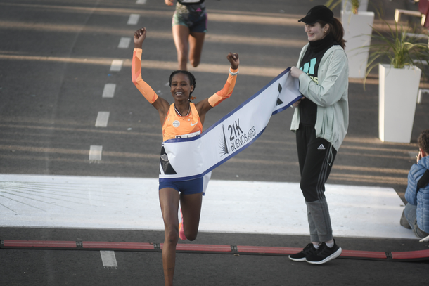 La vencedora por segunda vez en damas fue la etíope Ababel Brihane, ex recordwoman mundial del medio maratón, quien fijó una marca para el circuito de 1h06m10s. En el tercer puesto quedó la keniata y campeona mundial de maratón Ruth Chepngetich, otra de las figuras mundiales que en los últimos años prestigió esta carrera.