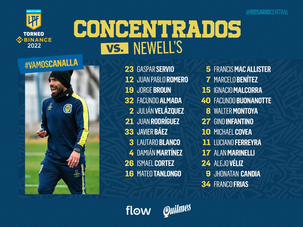 Consultado sobre si pensaba hacer cambios para el clásico, Tevez expresó que “nosotros trabajamos pensando siempre en Central. Uno está atento a lo que el otro equipo puede hacer, pero lo que buscamos es siempre la identidad propia. Y en esa búsqueda tratamos de manejar un partido, pero lo intentamos apostando al mejor juego, el mejor rendimiento de cada jugador”.