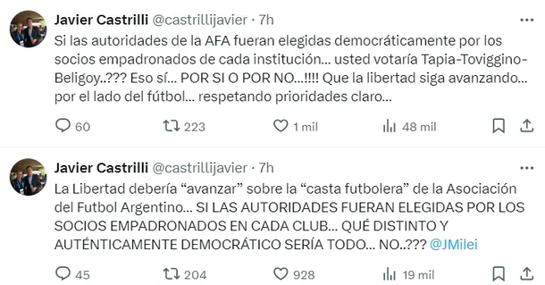 OTROS TUITS DE JAVIER CASTRILLI LUEGO DE LA POLÉMICA