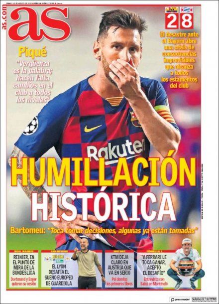 Los diarios españoles liquidaron al Barcelona tras el papelón ante el Bayern Munich