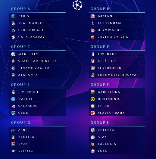 Sorteo de la Champions League 2019/20: así quedaron todos los grupos