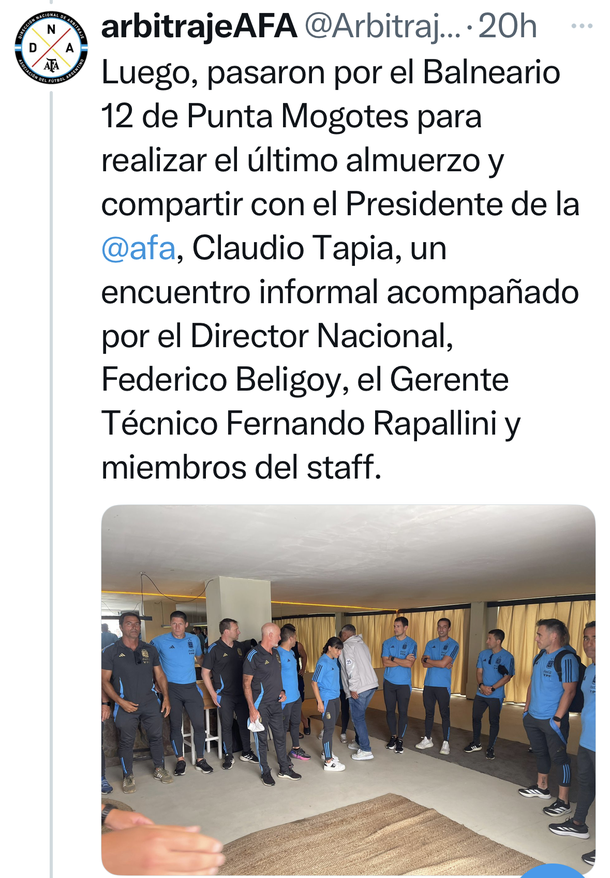 El presidente de la AFA, Claudio “Chiqui” Tapia, participó del cierre de la pretemporada de los árbitros del fútbol argentino, que culminó con un almuerzo en el Balneario 12 de Punta Mogotes, en la ciudad de Mar del Plata, donde también encabezó un sentido homenaje.