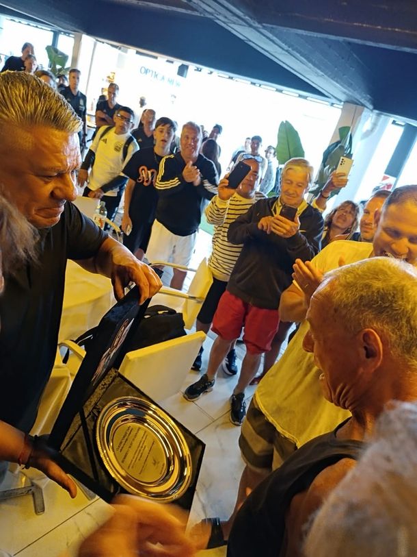Luego del encuentro, Tapia encabezó un sentido homenaje al fundador del Balneario 12 de Punta Mogotes, Buby Digiovanni, a quién le dio una plaqueta en reconocimiento a 50 años de trayectoria.