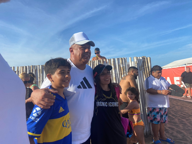 Tapia, sabiendo que había cámaras de TV y periodistas, optó por contestar con una sonrisa y seguir sacándose fotos mientras caminaba hacia su carpa donde lo esperaba Fredy, famoso carpero del Balneario 12, ya con el agua caliente para el mate.