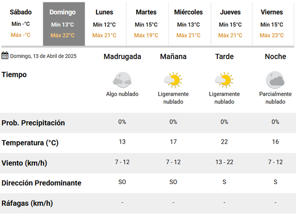 Si bien la temperatura mínima rondará unos bajos 13 grados, la máxima ascenderá a 22, por lo que durante el mediodía y la tarde será ideal para planes al aire libre, con amigos o familia. El viento inicialmente soplará desde el Sudoeste, pero al cierre del día lo hará desde el Sur, lo que permite prever un frente frío para la madrugada.