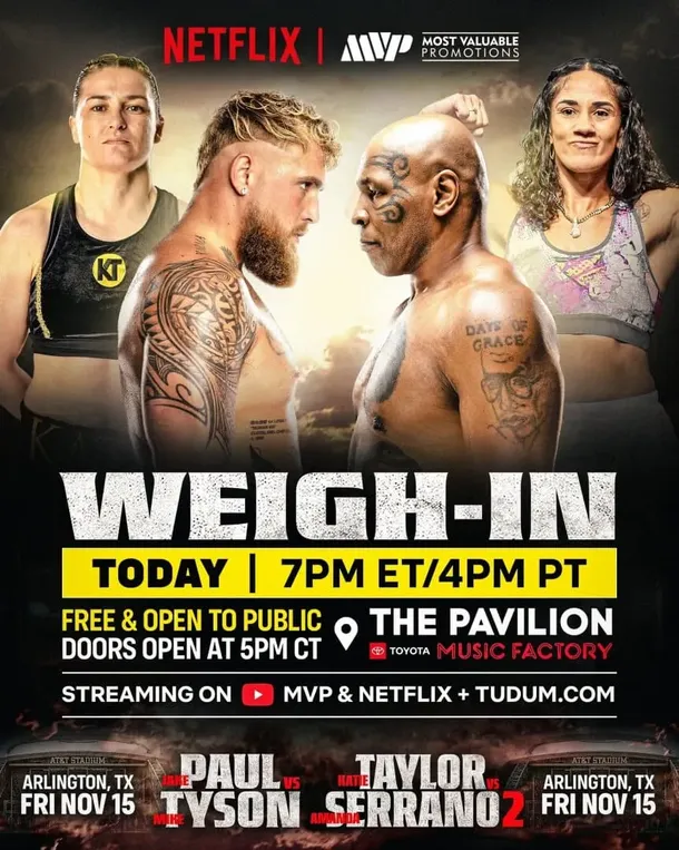El regreso al ring del legendario Mike Tyson será este viernes 15 de noviembre, cuando enfrente al youtuber y boxeador Jake Paul. El combate que quiere ver el mundo entero tendrá lugar en el AT&T Stadium de Arlington, Texas, y será el plato fuerte de una velada organizada por MVP Promotions, que también contará con la esperada revancha entre Katie Taylor y Amanda Serrano por todos los títulos superligeros.