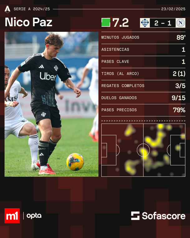 Los números de Nico Paz en el triunfo de Como antre Napoli