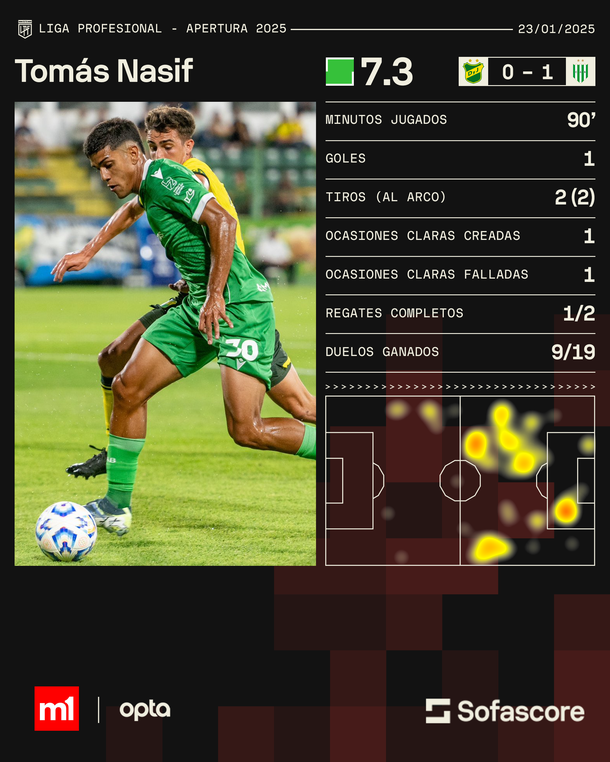 En el estadio Norberto Tito Tomaghello, el joven delantero Tomás Nasif, cedido a préstamo por River, marcó el único tanto de la noche en el que fue su debut en Primera División.