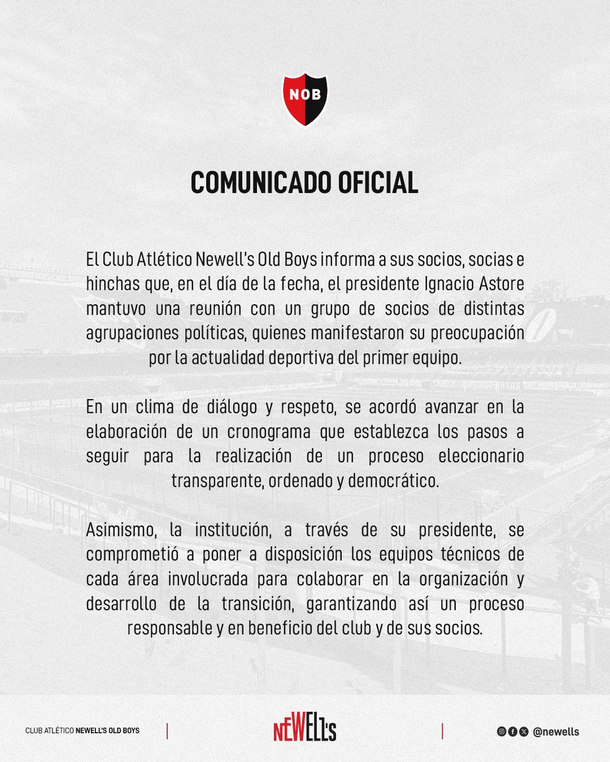 En medio del conflicto, el conjunto rojinegro emitió un comunicado oficial en el que confirmó la reunión de Astore con los sectores opositores para acelerar el proceso electoral.