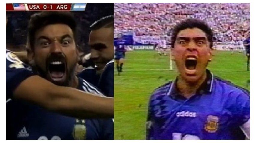 Así como celebró Diego en su último tanto en la Selección ante Grecia, también en Estados Unidos, el Pocho miró fijo a la cámara y se llenó la boca de gol. Mirá ambos festejos.
