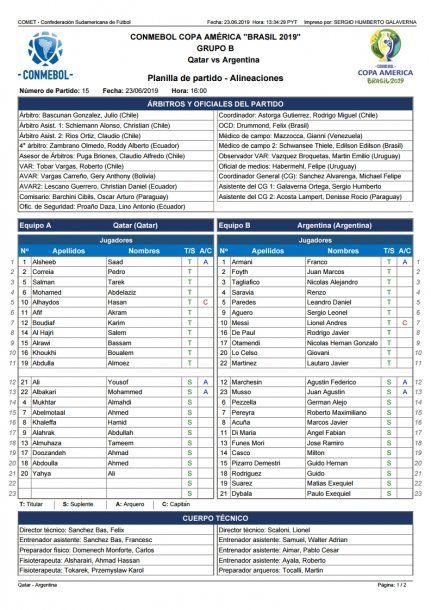 Entonces Argentina saldrá a la cancha en busca de su primera victoria en esta Copa América con: Franco Armani, Renzo Saravia, Juan Foyth, Nicolás Otamendi, Nicolás Tagliafico; Giovani Lo Celso, Leandro Paredes, Rodrigo De Paul, Lionel Messi, Sergio Agüero y Lautaro Martínez.