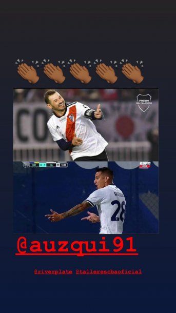 El autor del primer gol del conjunto que dirige Alexander Medina fue Carlos Auzqui, cuyo pase casualmente pertenece a River y que eligió celebrarlo recreando una "metralleta" que, según se supo después, tuvo un destinatario al cual se lo dedicó.