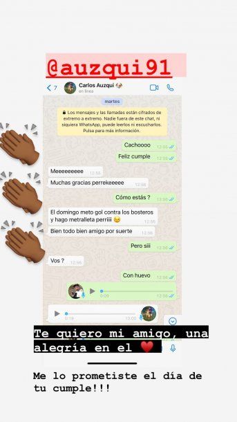 El encargado de sacar a la luz dicha conversación fue el propio Mora, quien en su cuenta de Instagram compartió el chat y escribió: “Te quiero, mi amigo. Una alegría en el corazón. “Me lo prometiste el día de tu cumple!!!”.