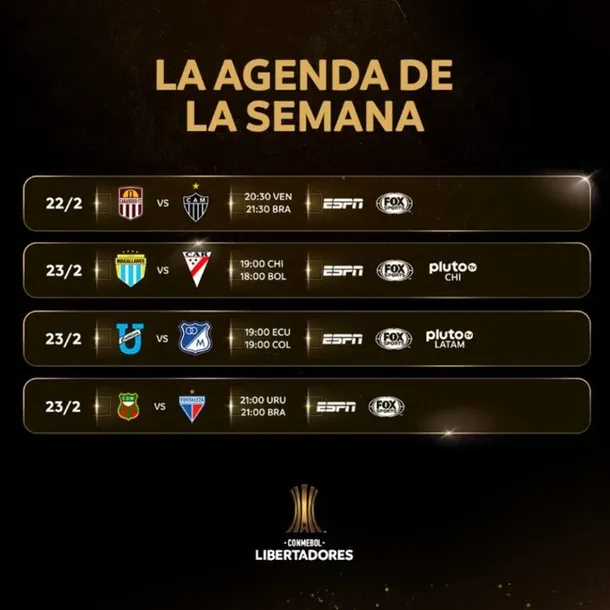 En tanto, el miércoles será un día cargado con tres encuentros. La jornada comenzará con el duelo entre El Nacional frente a Independiente de Medellín. A su término, a partir de las 21 en Montevideo, Huracán debutará ante Boston River, que viene de vencer a Zamora. Para cerrar la jornada, a las 21;30, Carabobo recibirá a Atlético Mineiro.