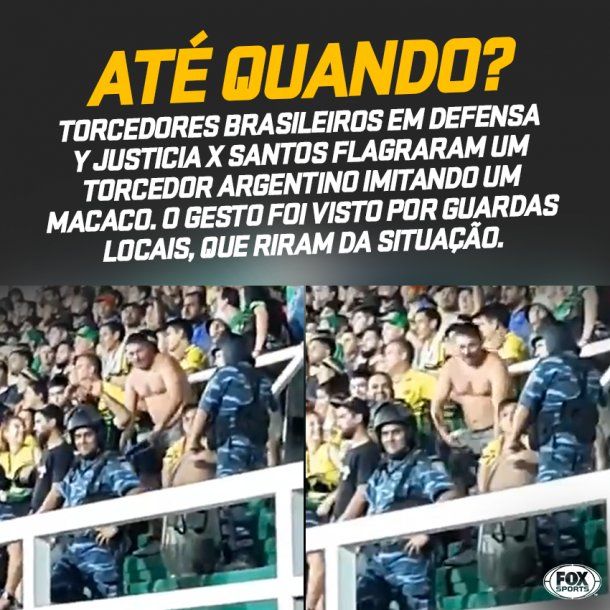 En un video que se viralizó publicado por uno de los visitantes, se ve como un hombre de Defensa carga a sus rivales imitando el gesto de un mono, uno de los insultos más recurrentes que suelen recibir los hinchas y hasta los jugadores brasileños en varias partes del mundo.