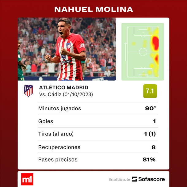 Nahuel Molina empató el partido: