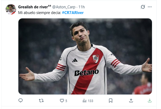 El hashtag se volvió tendencia ante rumores de la salida del portugués de Arabia Saudita. Los mejores memes por el posible pase de Cristiano Ronaldo a River.