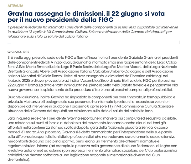 En ese contexto, Gravina decidió dar un paso al costado tras una reunión con los principales dirigentes del fútbol italiano en la sede de la FIGC, en Roma. Según el comunicado oficial, fue el propio dirigente quien informó su renuncia al inicio del encuentro, en medio de una presión creciente por los malos resultados deportivos.