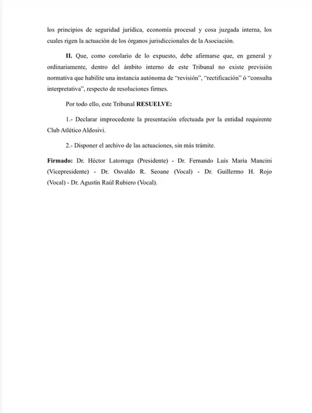 A ello se sumó una polémica con Aldosivi, que solicitó quitarle puntos al Tomba tras declaraciones del gobernador de Mendoza contra la AFA. El Tribunal de Disciplina desestimó el reclamo, pero el escándalo profundizó la sensación de caos institucional.