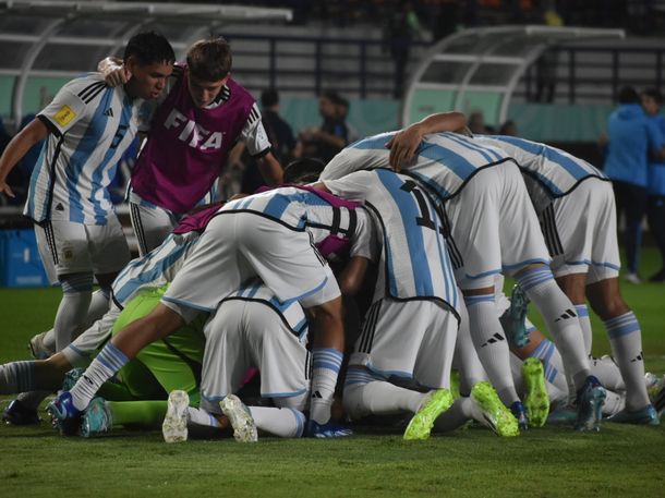 Echeverri, capitán y figura del seleccionado albiceleste, rompió el cero a los 5 minutos del primer tiempo con un formidable remate que se clavó en el ángulo izquierdo del arco rival.