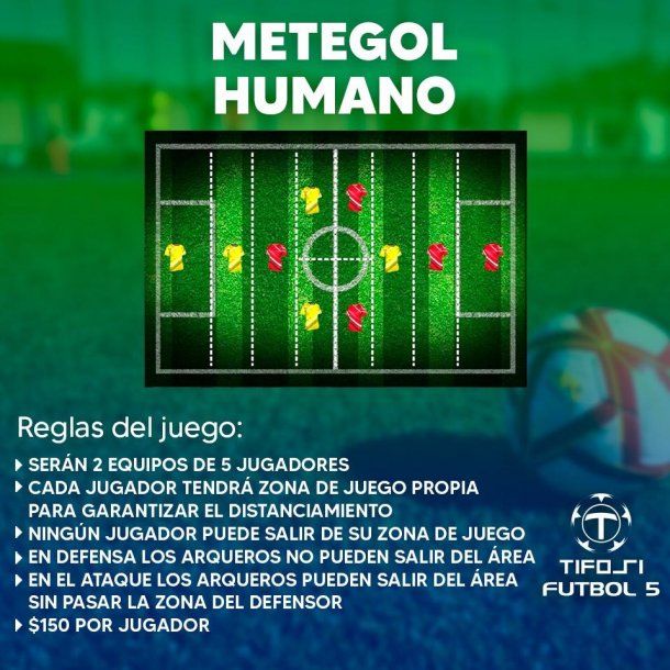 Se trata de una especie de “metegol humano” en el que cada jugador tiene su propia zona de juego delimitada por líneas blancas y no puede salirse de ella.