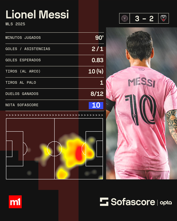 Los números de Lionel Messi en el triunfo de Inter Miami ante DC United